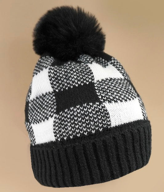 Queen Me Checkered Beanie - Black/White