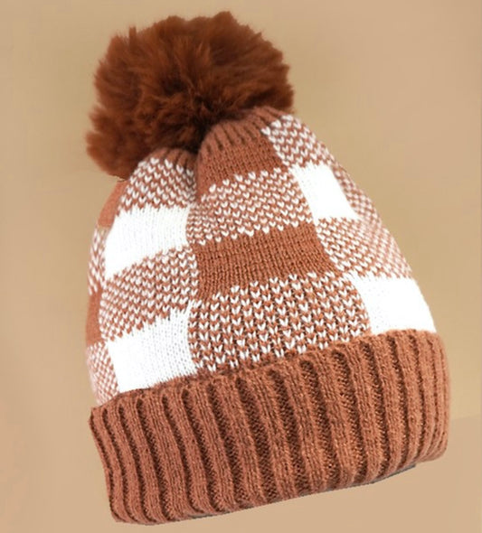 Queen Me Checkered Beanie - Camel/White