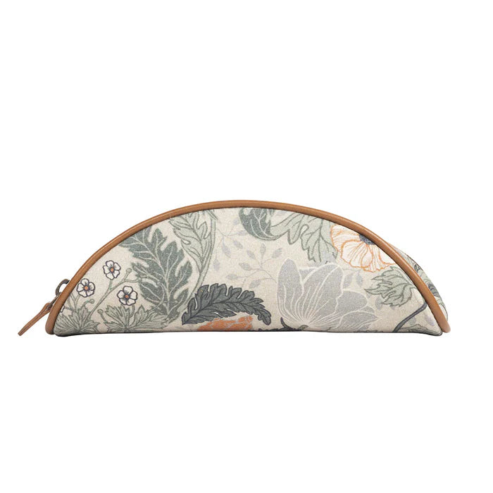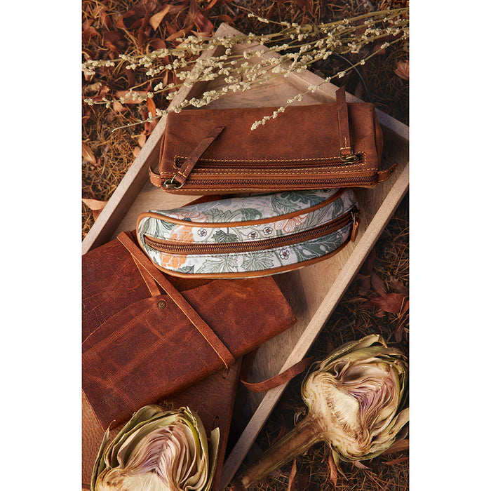 This great bag offers beauty and function in one! Perfect for carrying your essentials in a trim package while on the go. The upcycled woven canvas presents a lovely scene of blossoms, accented in sunset peach and sage green. Full-width zipper-closure keeps everything snug and secure. It can be used for toiletries, writing and art supplies, or .